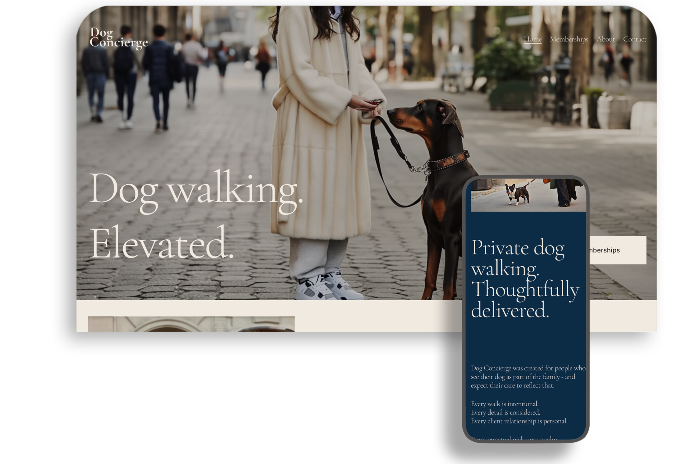 Clean, Elevated Branding - No “cute dog walker” clichés. This is refined, restrained, professional.